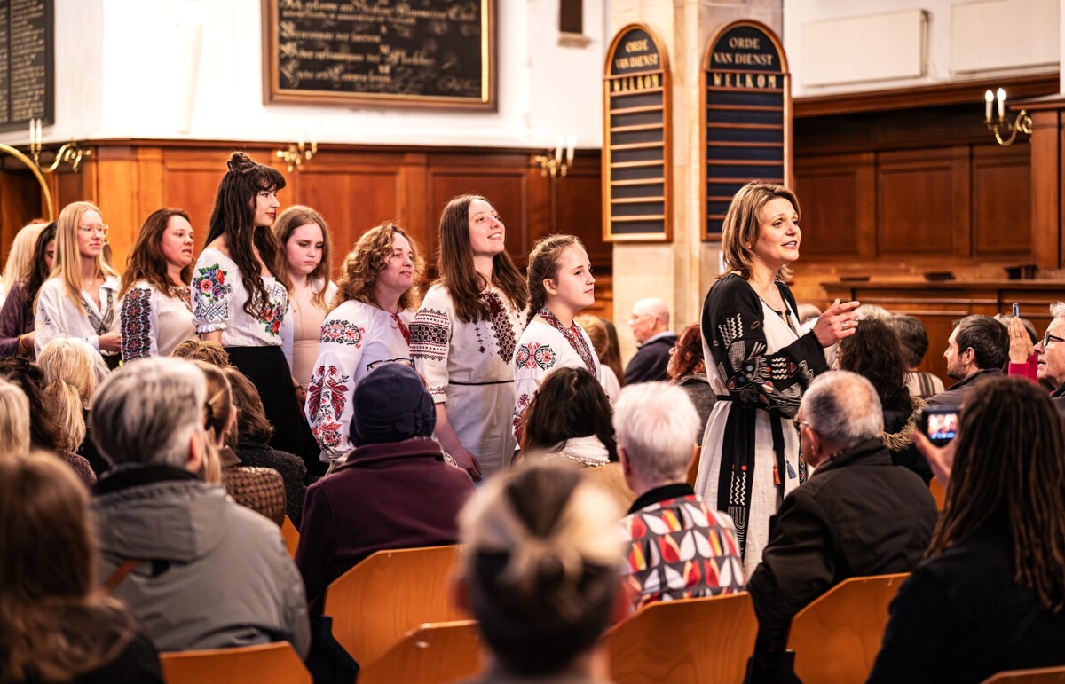 Prior to the concert, Maryana led singing workshops at Codarts Global Musics and the Ukrainian House Rotterdam. This gave rise to an international choir, featuring many singers with Ukrainian roots. During the concert, the women joined Maryana in performing several songs. Voices came together from different corners of the church, creating an unforgettable and magical experience.